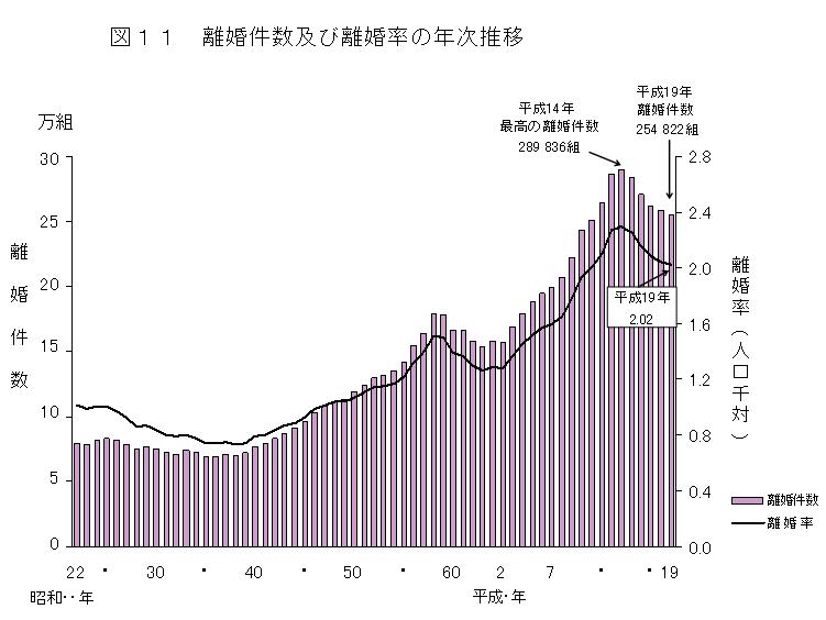 「離婚大国−『第一生命経済研究所』レポート」で、離婚予備軍が40万6000組も居て、平成19年の厚生年金分割制度発足で平成15年以降減少していた離婚件数が、一気に増えるであろうとの予測がなされていました。