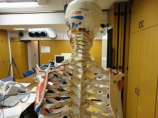 小松法律事務所マスコット骸骨クンです。向かって左側の関節には靱帯もついていますが、何せ安物靱帯のため可動域が大変狭く、自由に動きません。身長は160数pで私と同じくらいですが、脚の長さはまるで違います(^^;)。